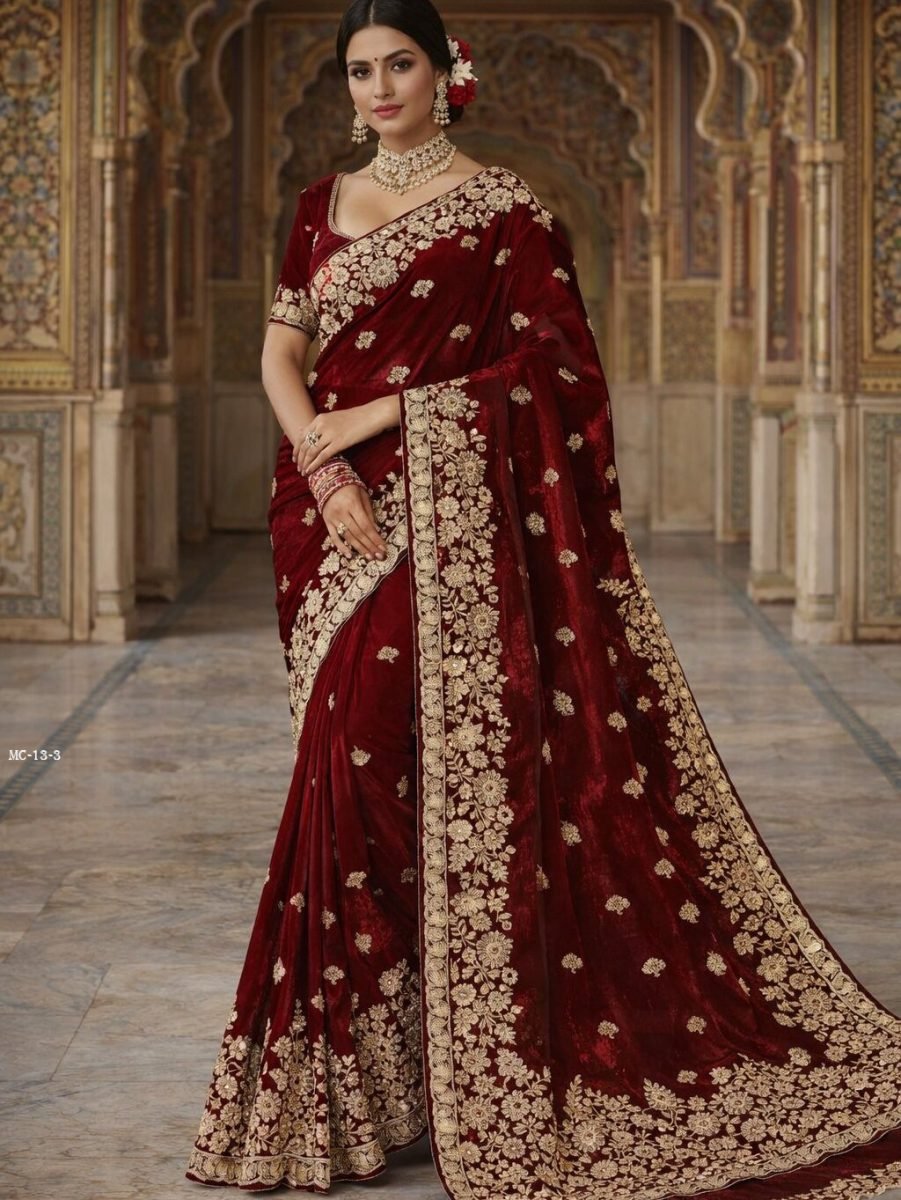 Paired with a heavily worked fancy blouse in matching Space Silk fabric, this ensemble is perfect for weddings, festive celebrations, parties, and special occasions.