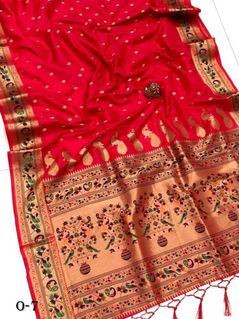 paithani saree often butti on body, the highlight on peacock border and morbangdi pallu.
