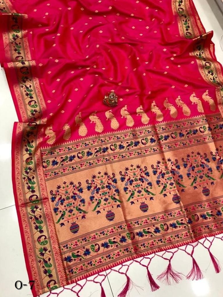 paithani saree often butti on body, the highlight on peacock border and morbangdi pallu.
