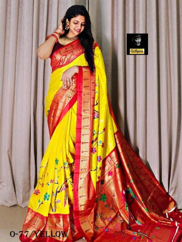 Launching New Soft Pure Dola Silk Kalamkari And Paithani Digital Print Saree With Gold Zari Foil Border With Kalamkari Style Printed Body And Pallu & border comes With Gold Zari Foil Work
