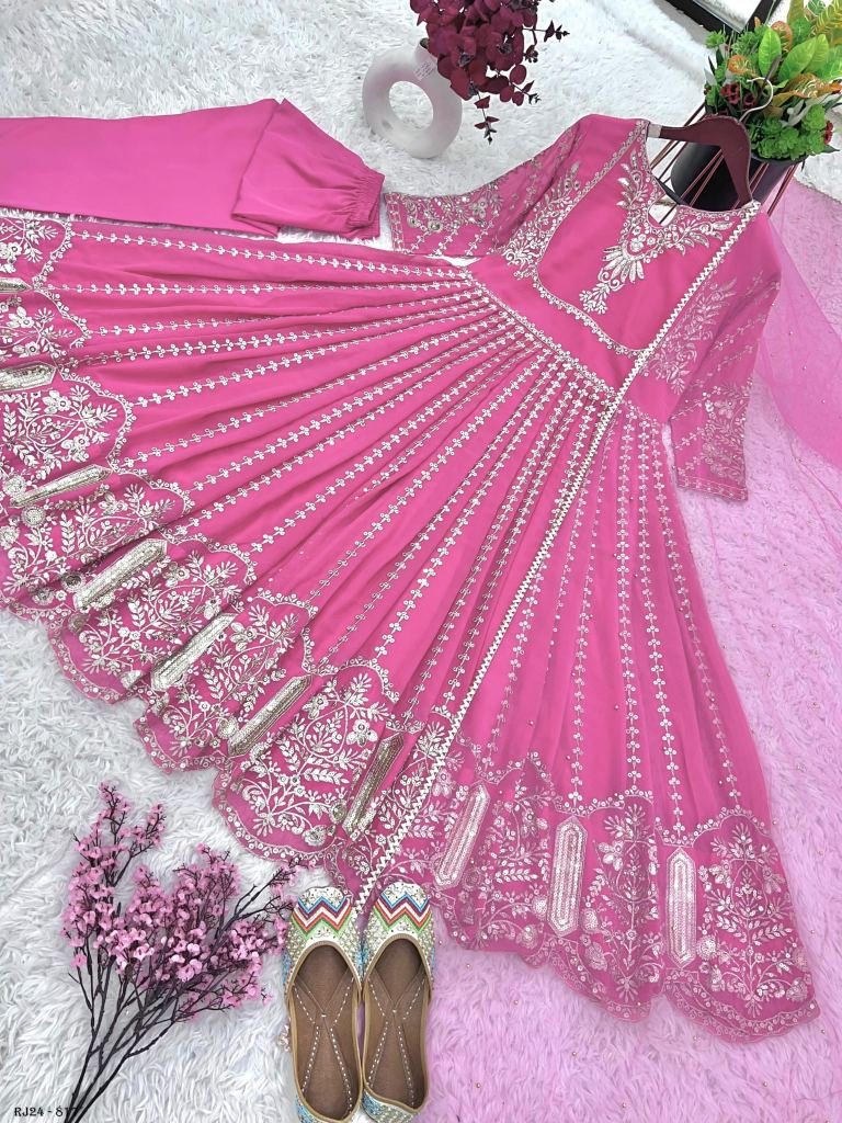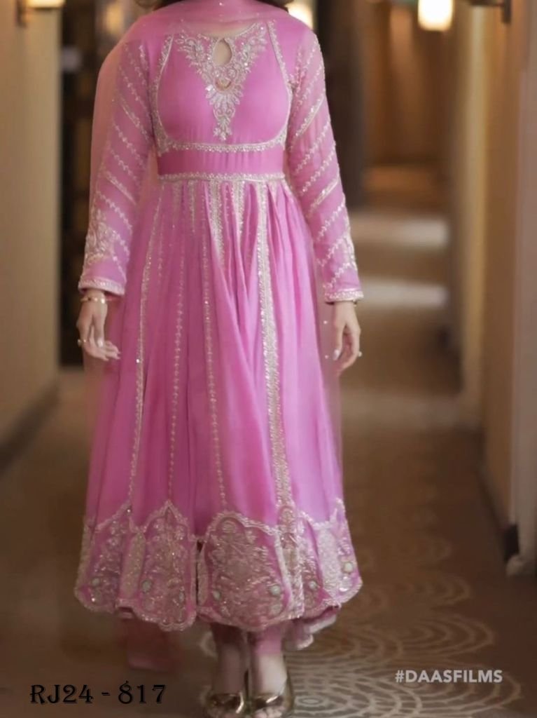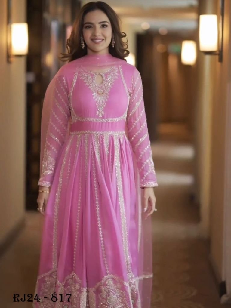 Gown Fabric :Faux Georgette With Full Heavy Embroidery Sequence Work with Sleeve