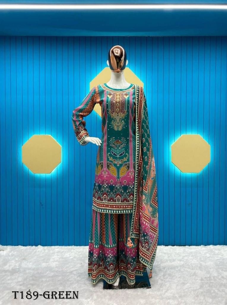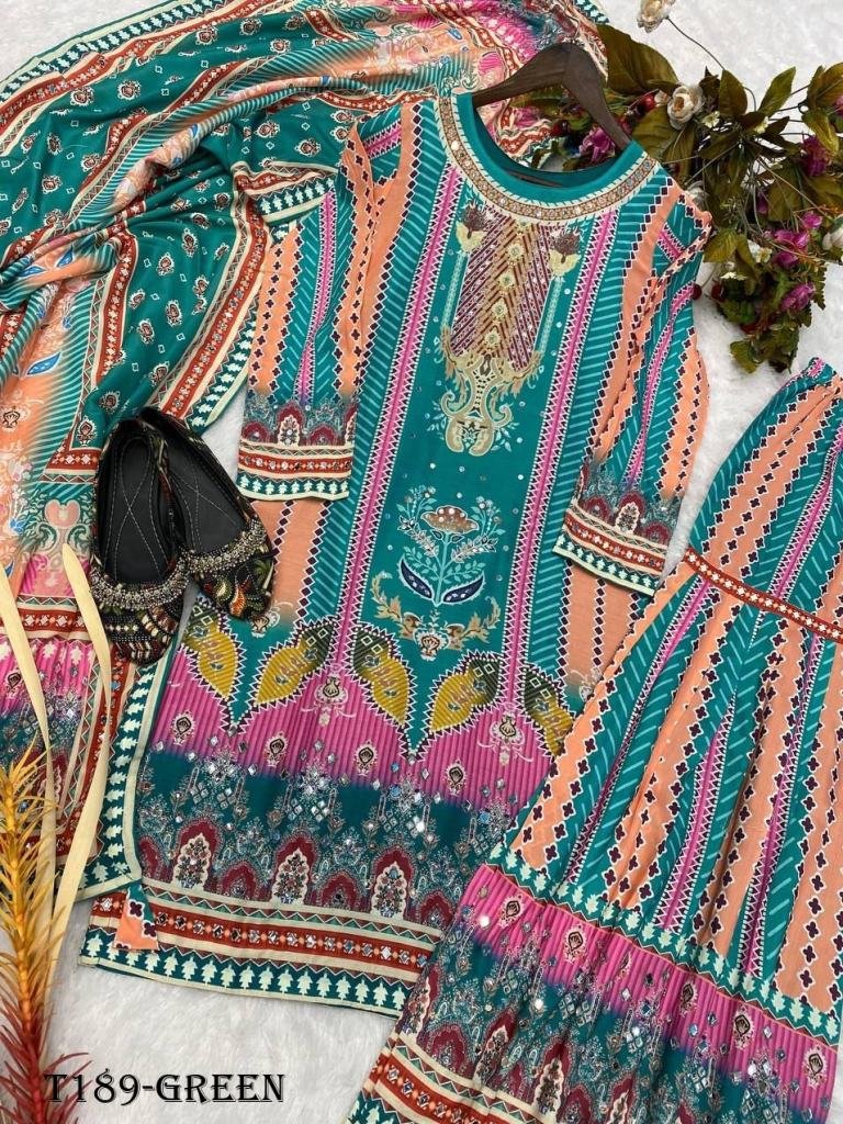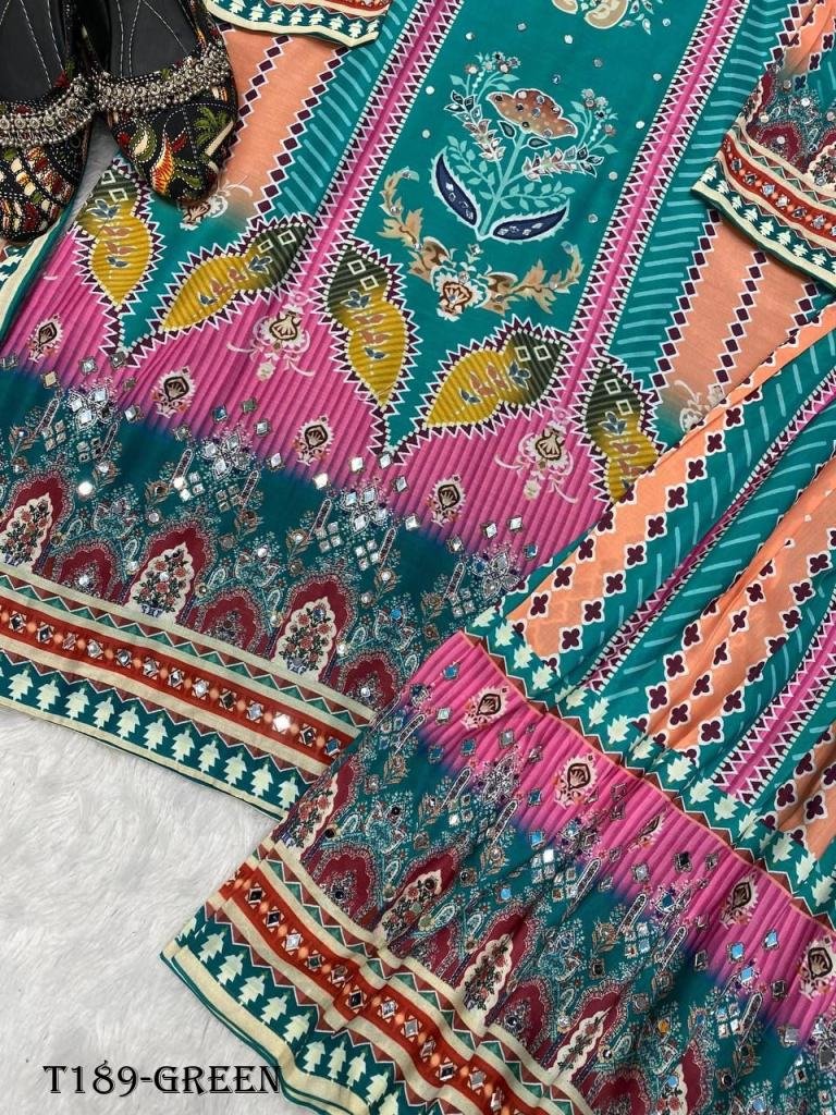 summer wearable fancy muslin printed with real mirror work top and sharara with printed dupatta