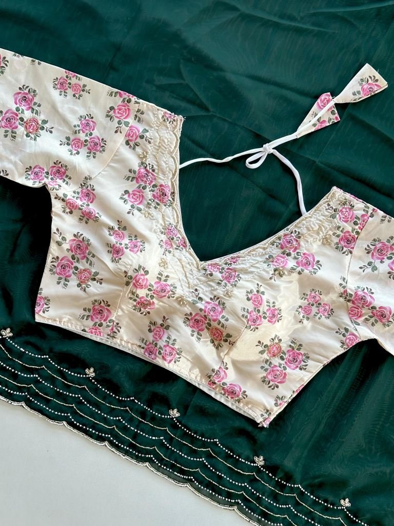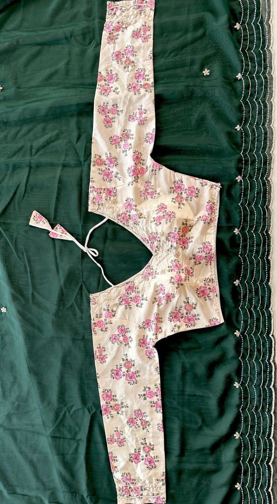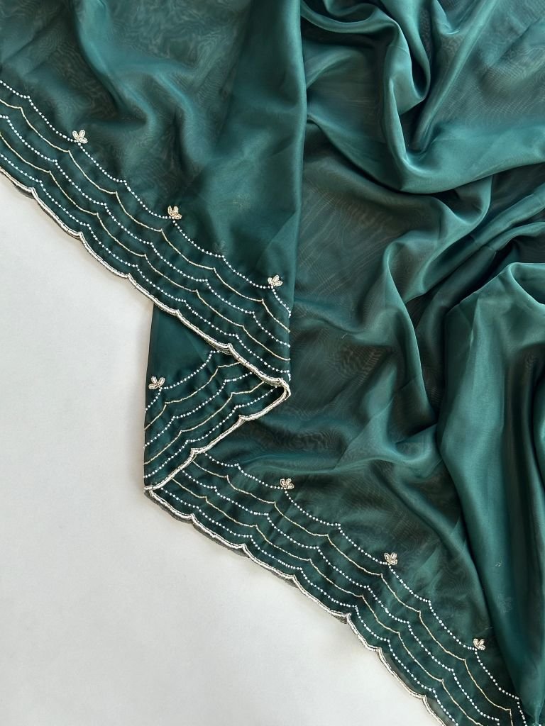 Fabric :- OrganzaWork :- Handcrafted WorkBlouse :- Unstitch 0.8Saree Length :- 5.5
