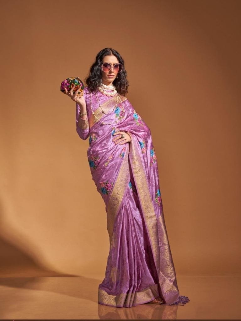 • Latest Branded Rani Flower Work Satin Silk Saree