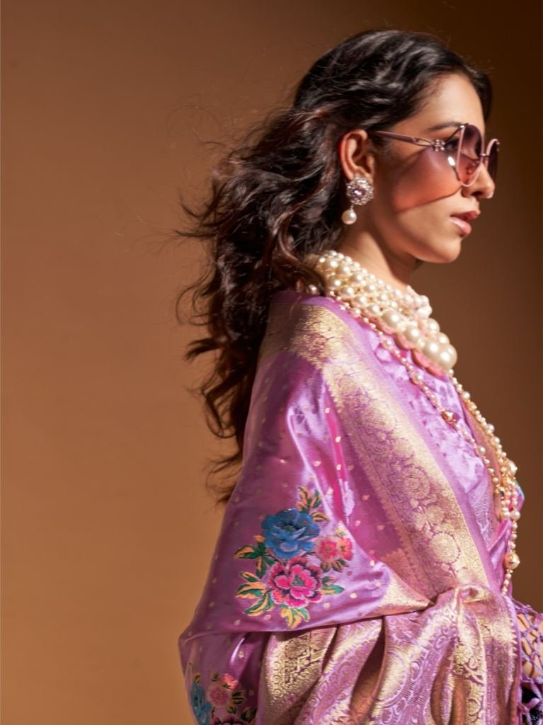 Party Wear Khalissi Silk Brand Handloom Weaving Satin Silk Saree