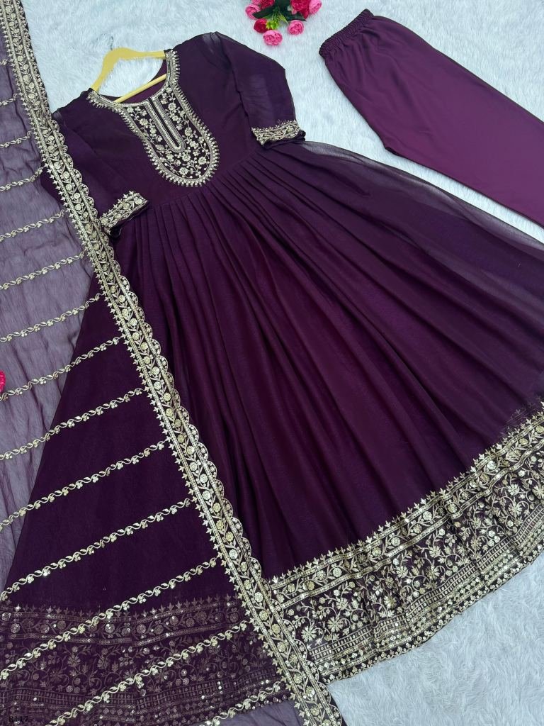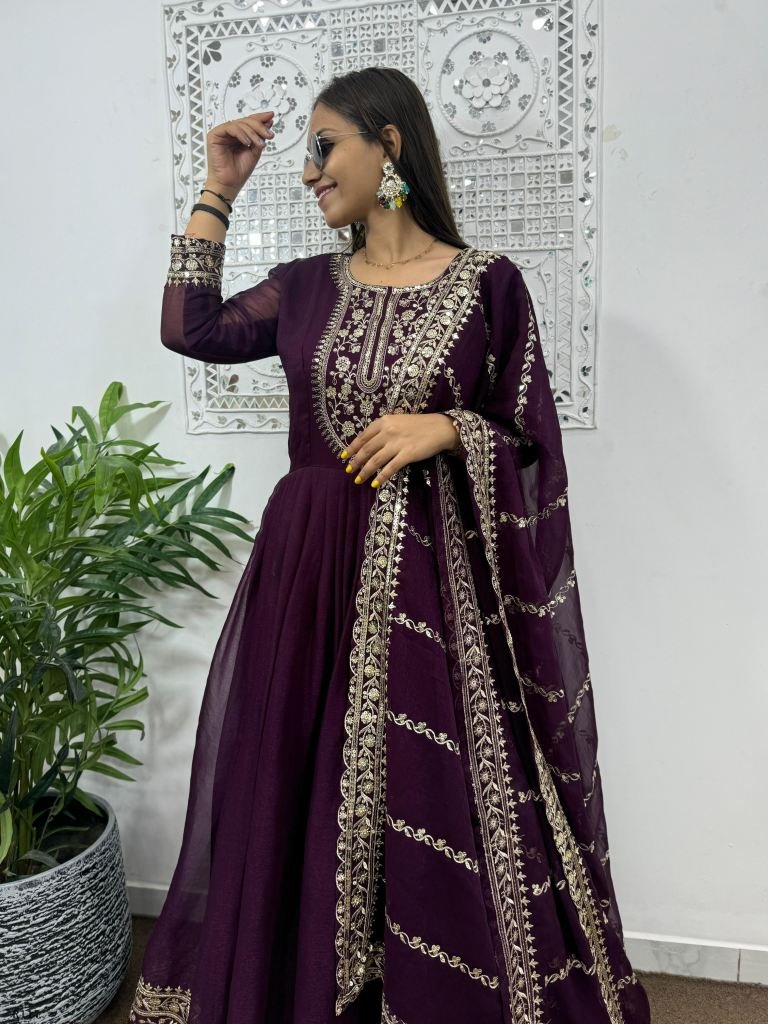 Gown Work : Fancy Heavy Embroidery And Sequins Work With Stitched Pad