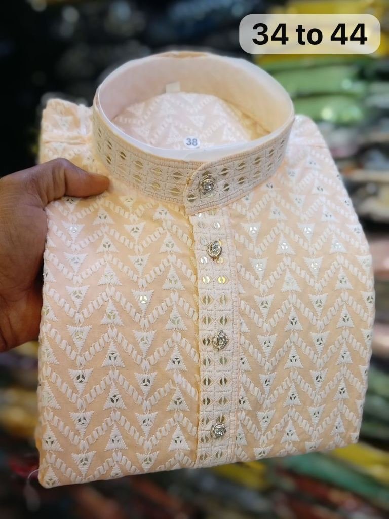 • 7 MM Sequence Work Men Wedding Rayon Kurta