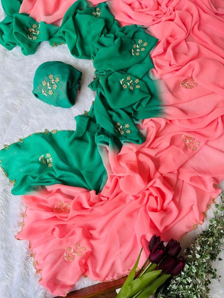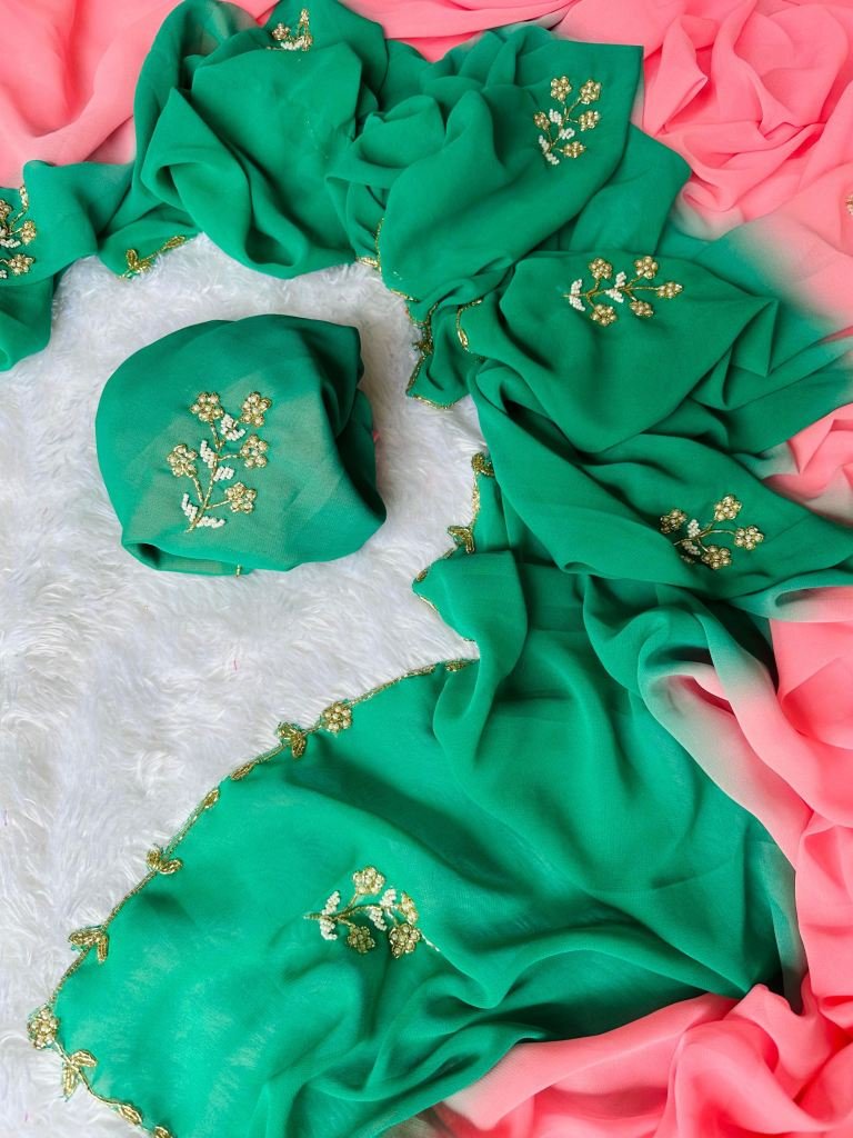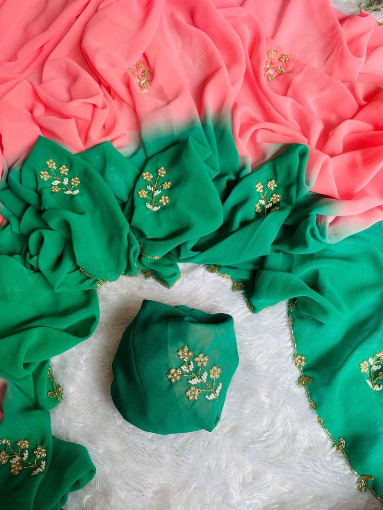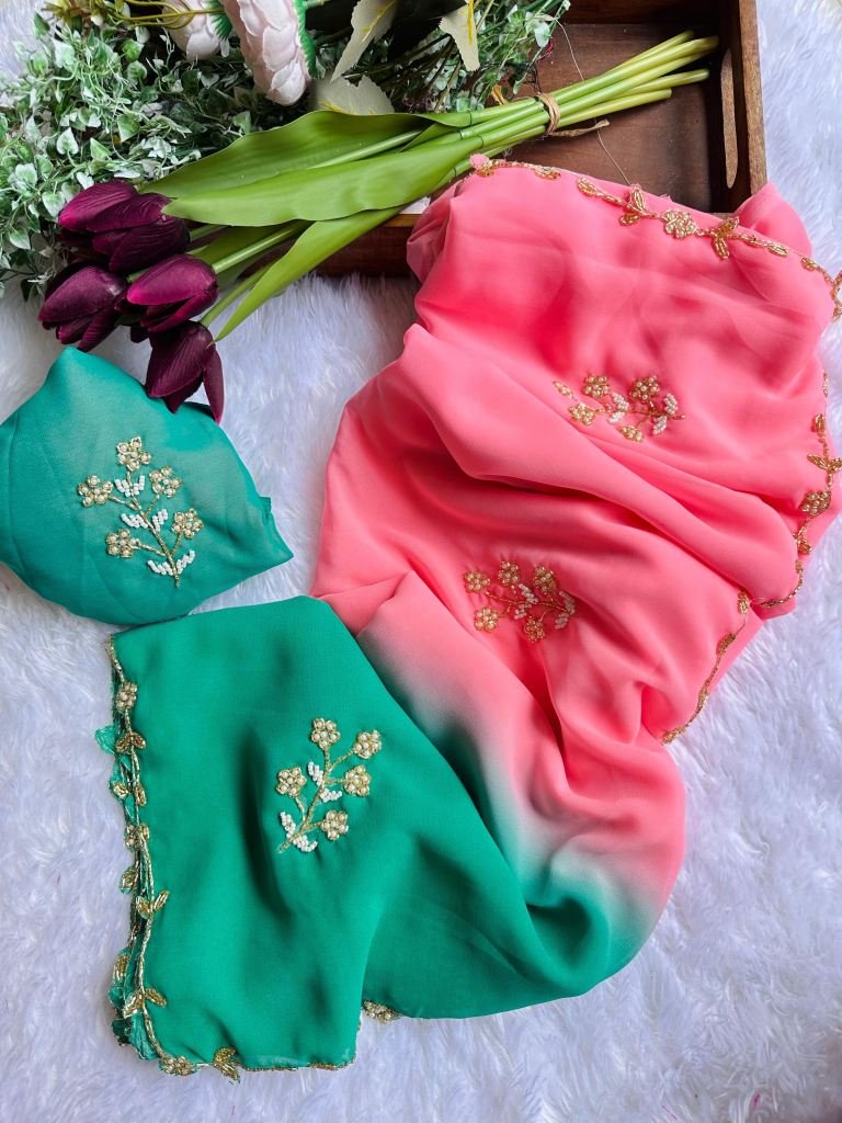 Fabric :- Georgette Work :- HandworkColor :- All in Dual ColorSaree Length :- 5.5 mtrBlouse Length :- 1.0 mtr