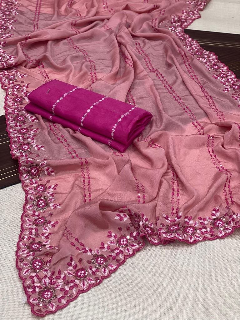 Saree :- Chinnon SilkBlouse :- Mono Banglori SilkWork :- Embroidery Saree Length :- 5.5Blouse Length :- 0.8