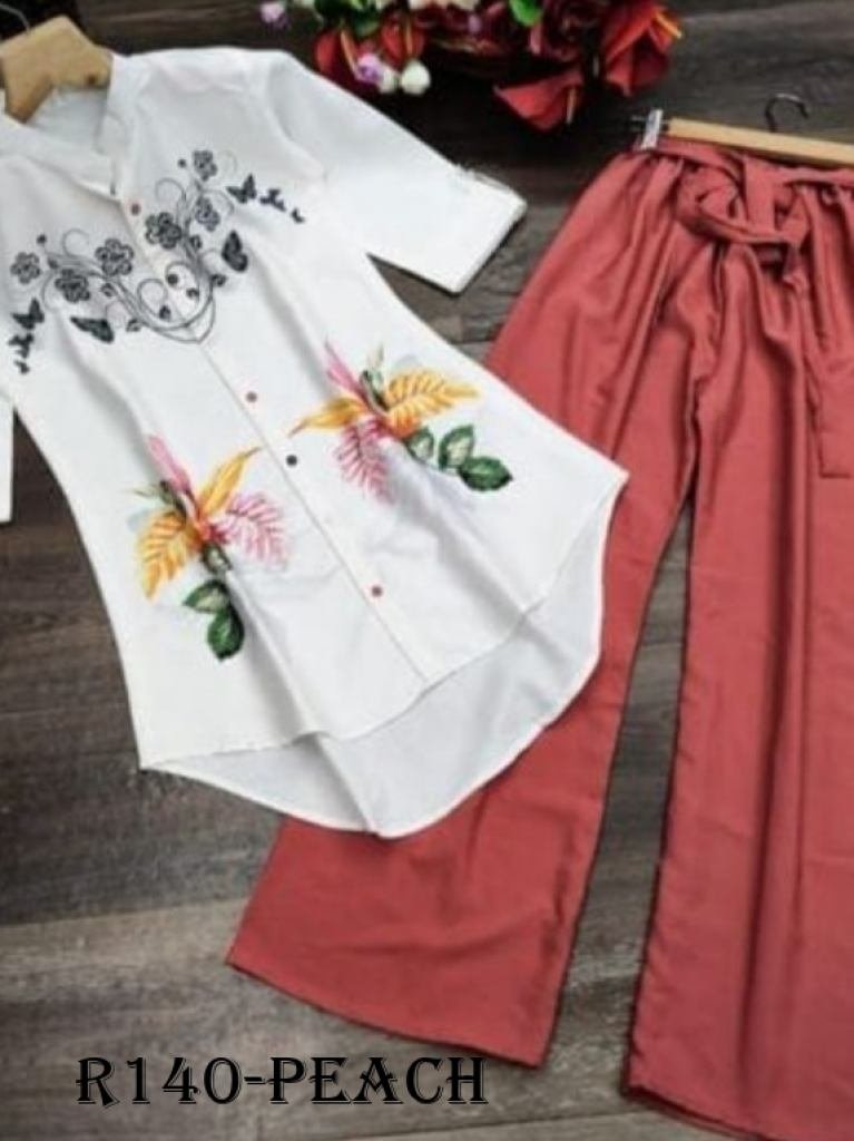 TOP :-Top Fabric :- COTTON PRINT Top Length:-front 31" Inch, back 35"PLAZO :-HEAVY AMERICAN CREAPPlazo Length:- 38+”Inch Full Stitched Readymade