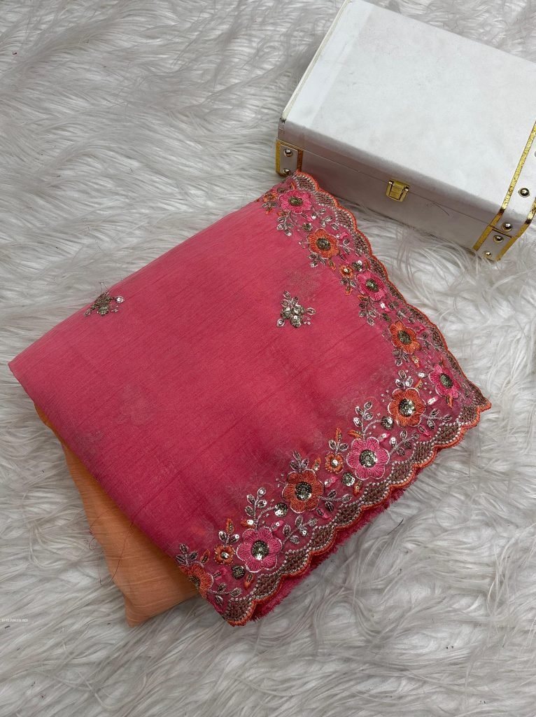 SareesSoft Crunchy 3d Padding Fabric With 5 Mm Sequence Embroidery With Multi Thread Embroidery Work And Beautiful Arc Cutting Border.BlouseMono Banglory With Embroidery Work