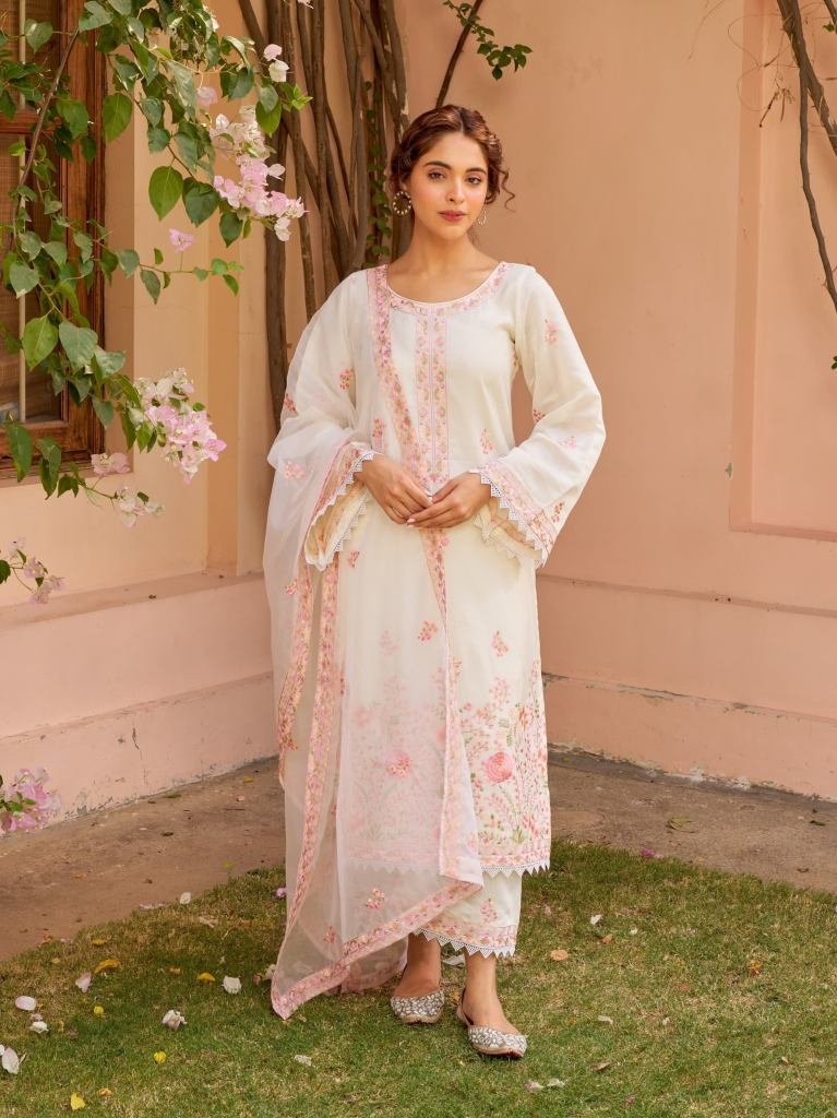 A Mesmerising Straight Kurta Set, Reminiscent Of A Sunset's Serene Hues With Its Graceful And Surreal Whiteu Ombre. Delicate Embroidery Adorn The Neckline, Ghera And Sleeves, While The Delicate Embroidery All Over The Shirt Adds An Enchanting Touch, Transforming This Simple Kurta Into A Summertime Masterpiece.