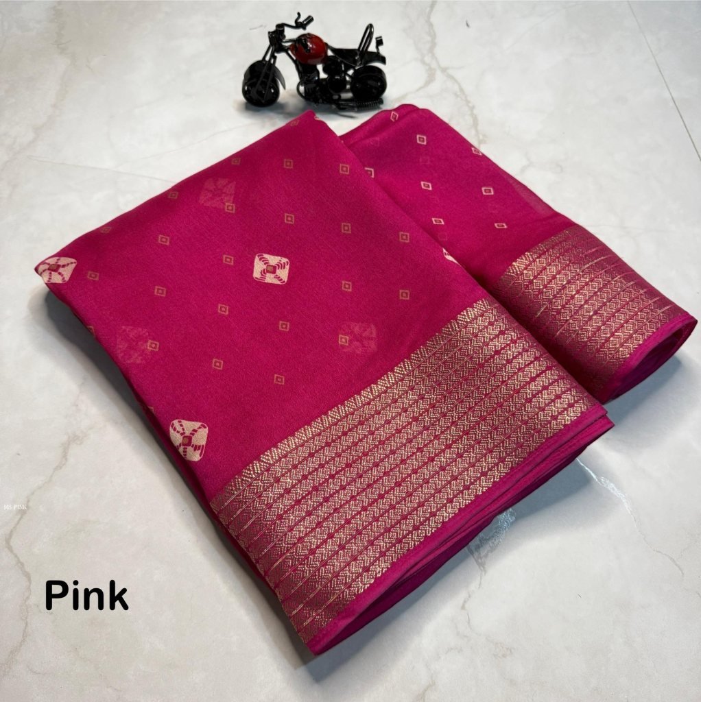 Saree - Soft Marshmallow Blooming Heavy Jacquard Weaving Border And Beautiful And Kalamkari Style Print Blouse - Soft Marshmallow Blooming Running Printed Blouse Length - 6.30 Meter