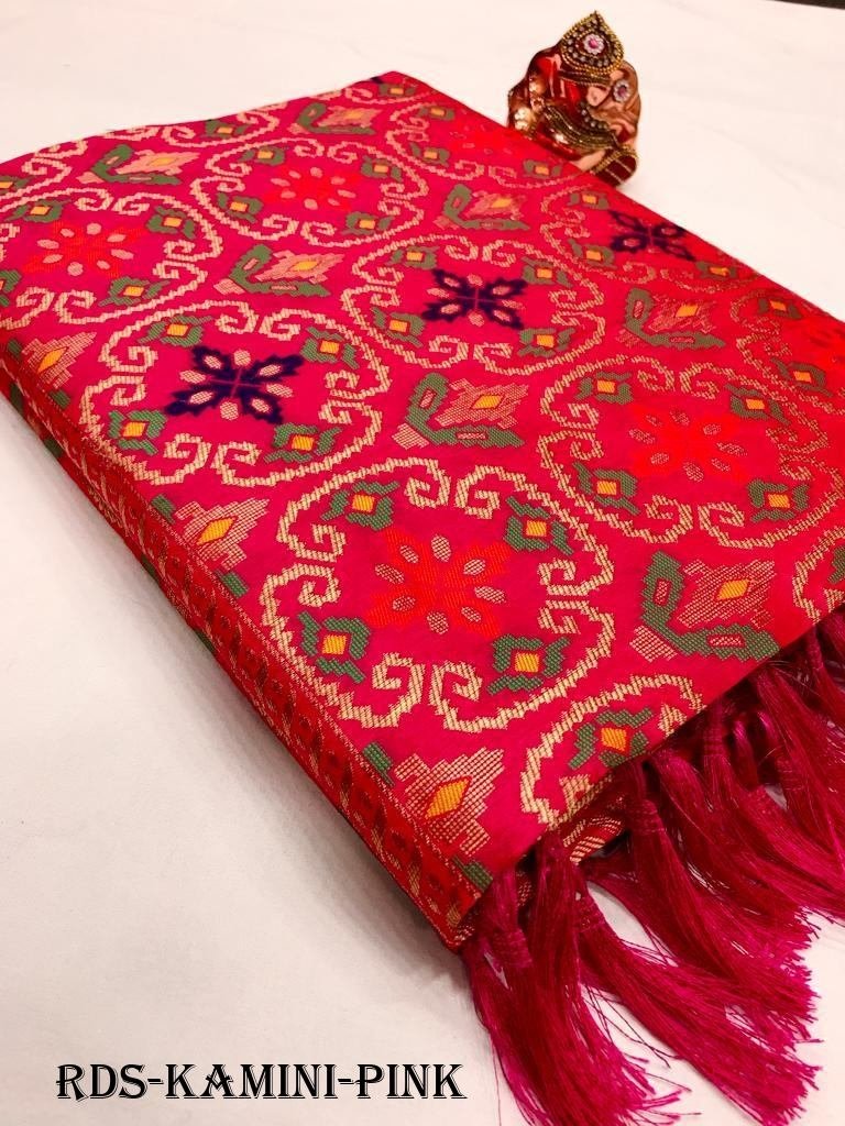 • Pink Kamini Pure Soft Banarasi Patola Saree