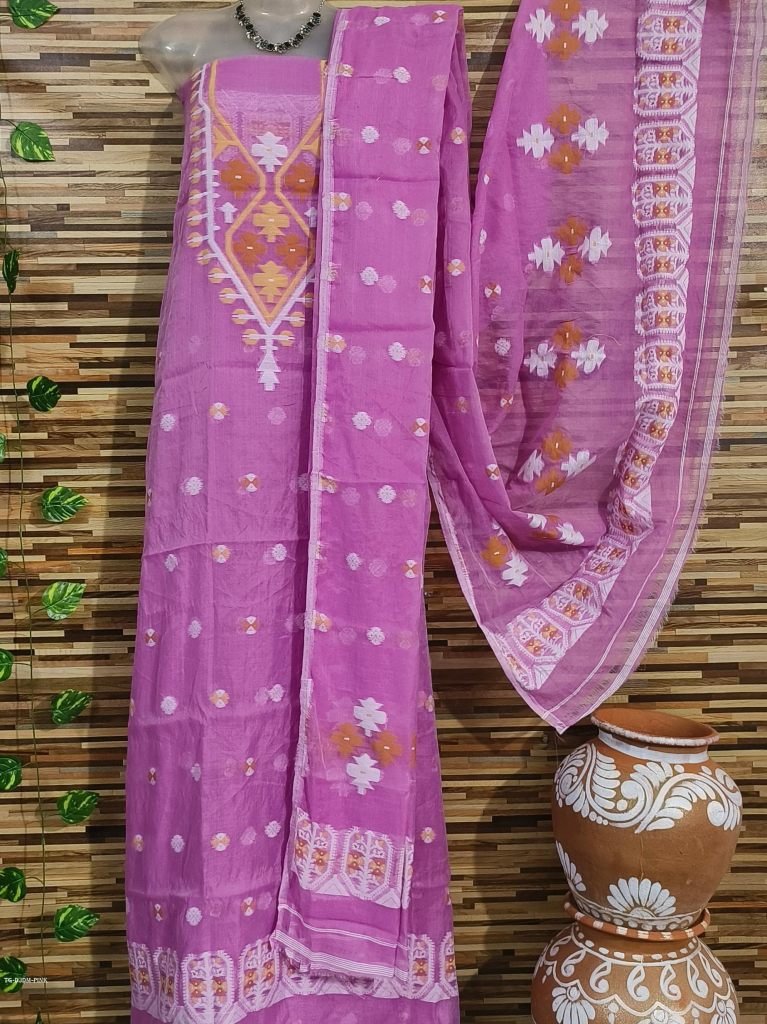 NEW EXCLUSIVE SUTS PCS Dhakai JamdaniMost demanding productjamdani suits 2 pcsFabric :- JamdaniTop Meter :- 2.5 MeterDupatta :- 2.5 MeterColor :- PinkOccasion :- Wedding, Festival, Regular, Function,
