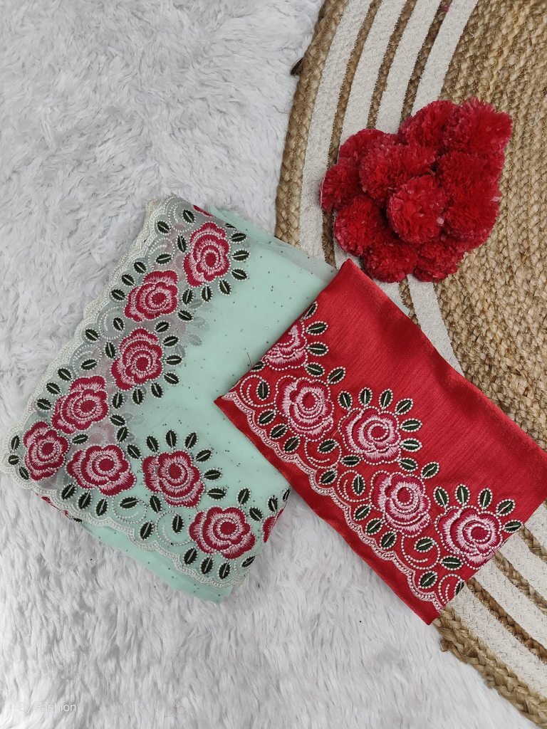 1 Blouse :- contrast Matching banglory blouse with Embroidery work (1.0 Mtr)