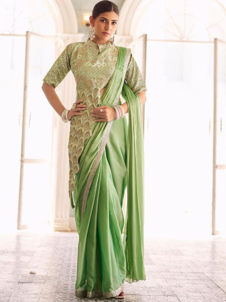 Ready To Wear Saree DetailsFabric:- ChinonWork:- Embroidery Work Lace Border With / Ready To WearBlouse DetailsFabric :- BangloryWork :- Stylist Heavy Embroidery Work/Full Stitch Up To 42 Inch