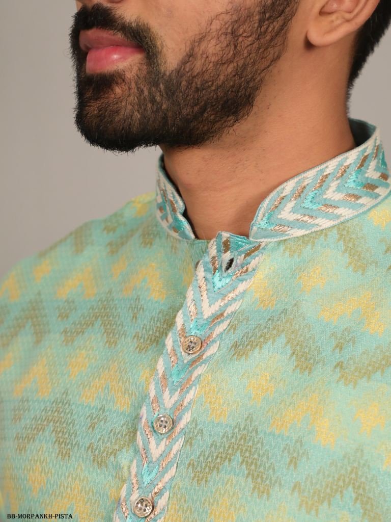 • Gold With Pista Morpankh Soft J Card Men kurta with Payjama
