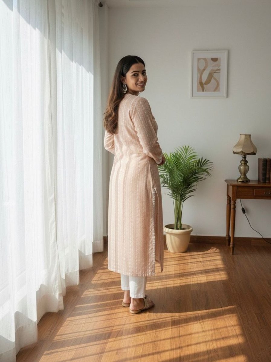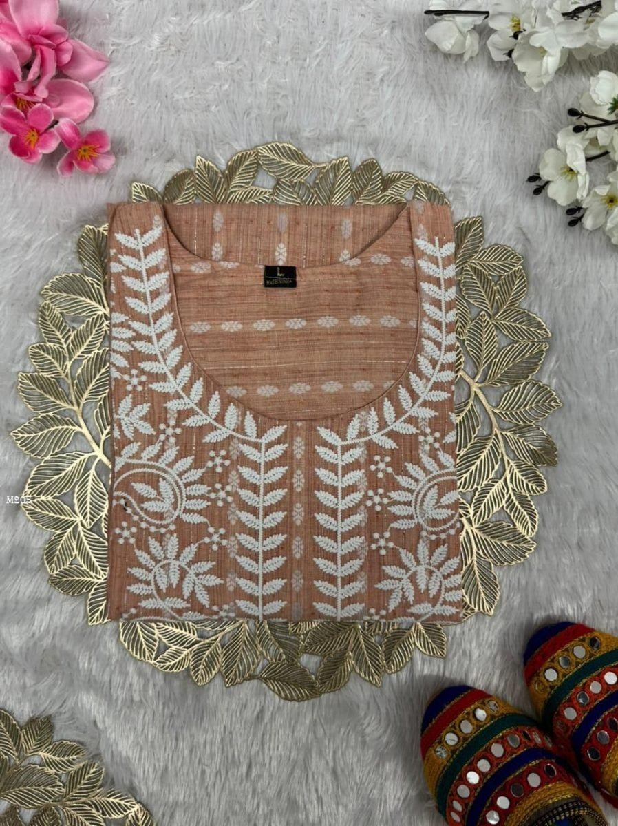 New Designers KurtiKurti :- Khadi Cotton butti with Beautiful EmbroideryInner :- CreapSIZE - S M L XL XXL 3XLThe Colour May Vary Slightly From The Picture Due To Lighting Condition