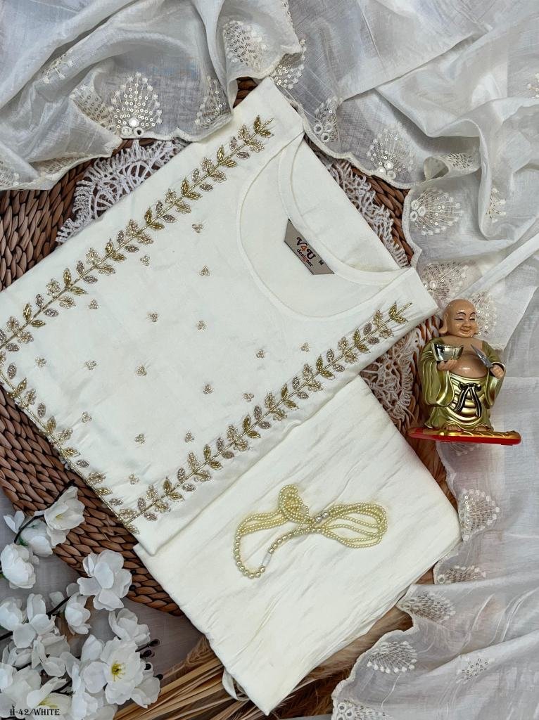 • Premium Muslin Silk White Kurti Pant with Duppata