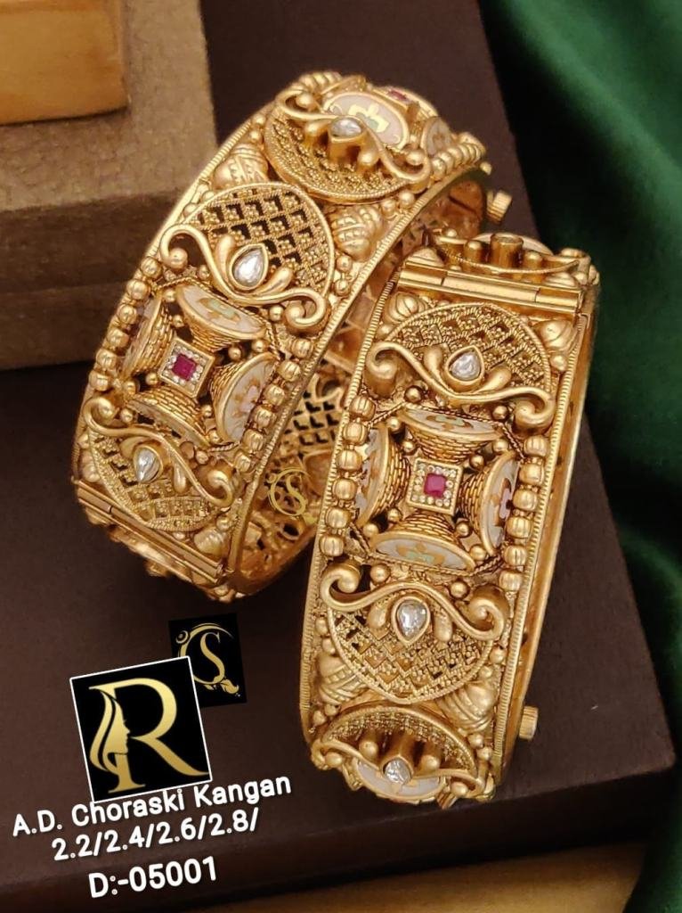 Exclusive Premium Quality Fancy Designer   Bollywood Concept Superhit   Original Brass High Gold Antique Rajwadi 2 Pcs Bangles (Size Mentioned in photo)