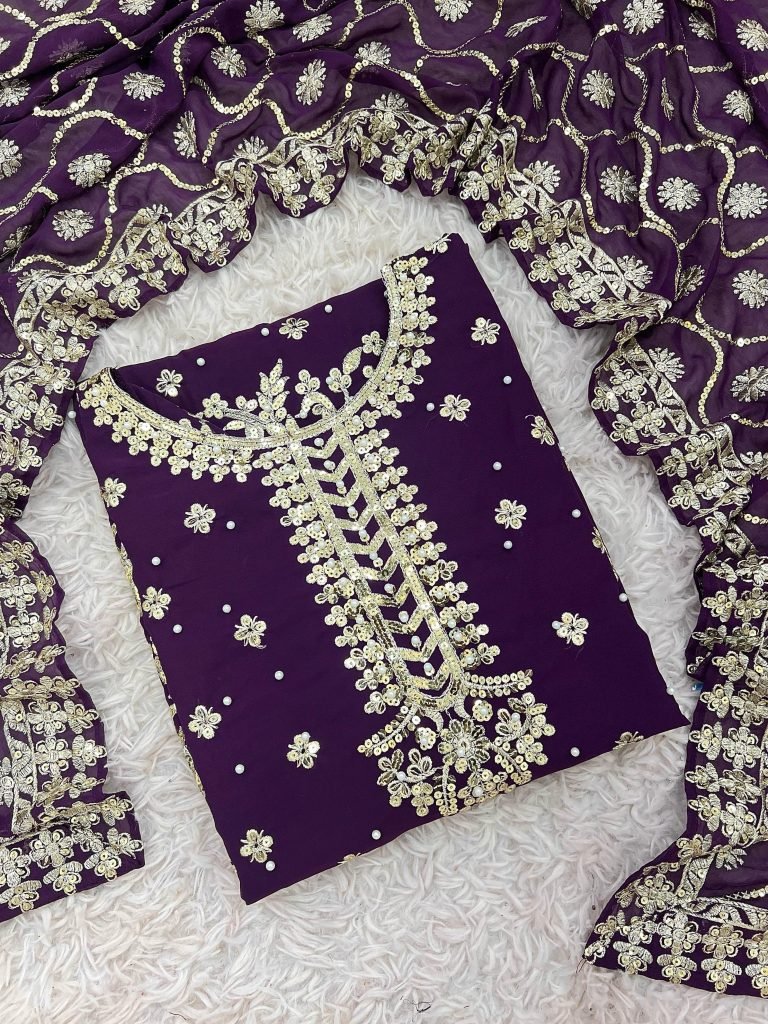 Top Fabric :heavy Faux Georgette With 5mm Embroidery Sequence Work With Beads Work With Full Sleeve