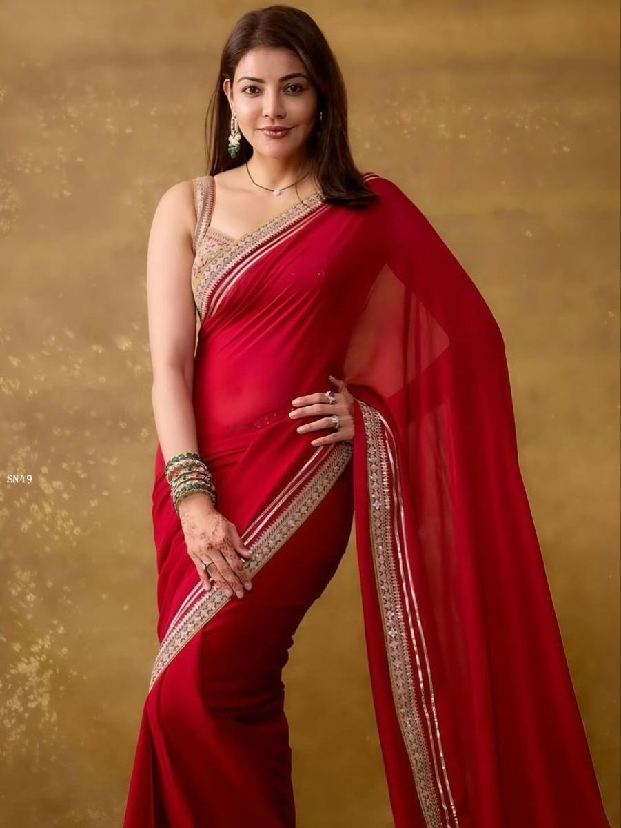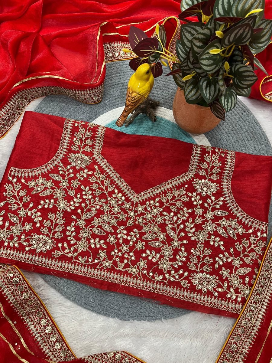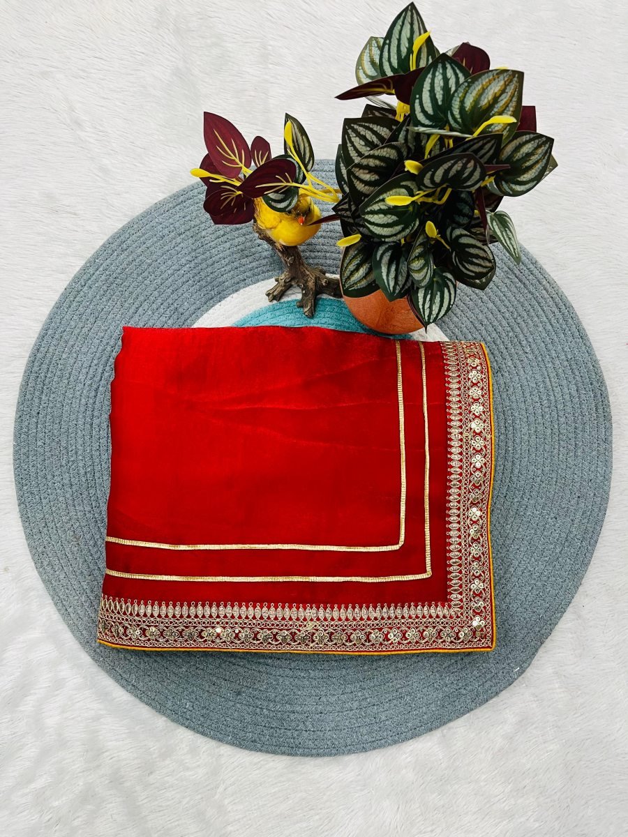 Work: Solid Plain Saree Fabric with Jari Dori Embroidery With 3mm & 5mm Sequins Work.