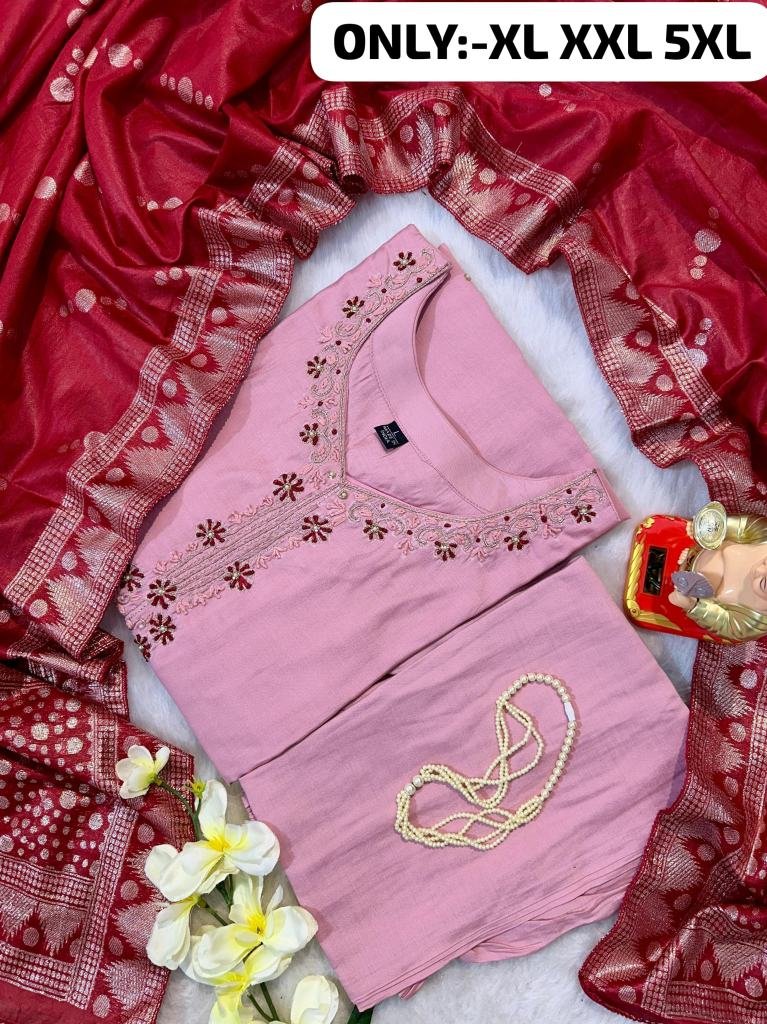 • Trandy Pure Muslin Pink Colour Top, Bottom Dupatta Set