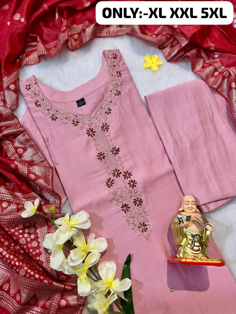 Pure Hand Work Pink Colour Top, Bottom Dupatta Set