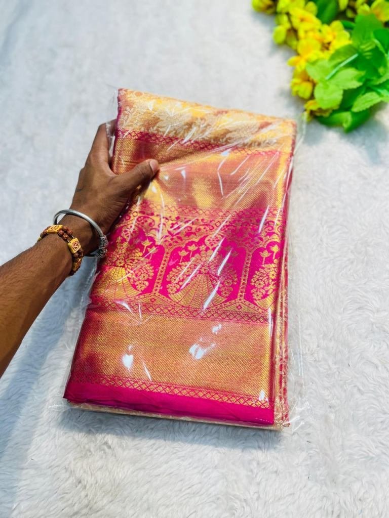Fabric Details : Pure Kanjivaram Silk With Mina Weaving & Beautiful Soft Naylon Zari Border & Contrast Naylon Gold Zari Rich Weaving Pallu