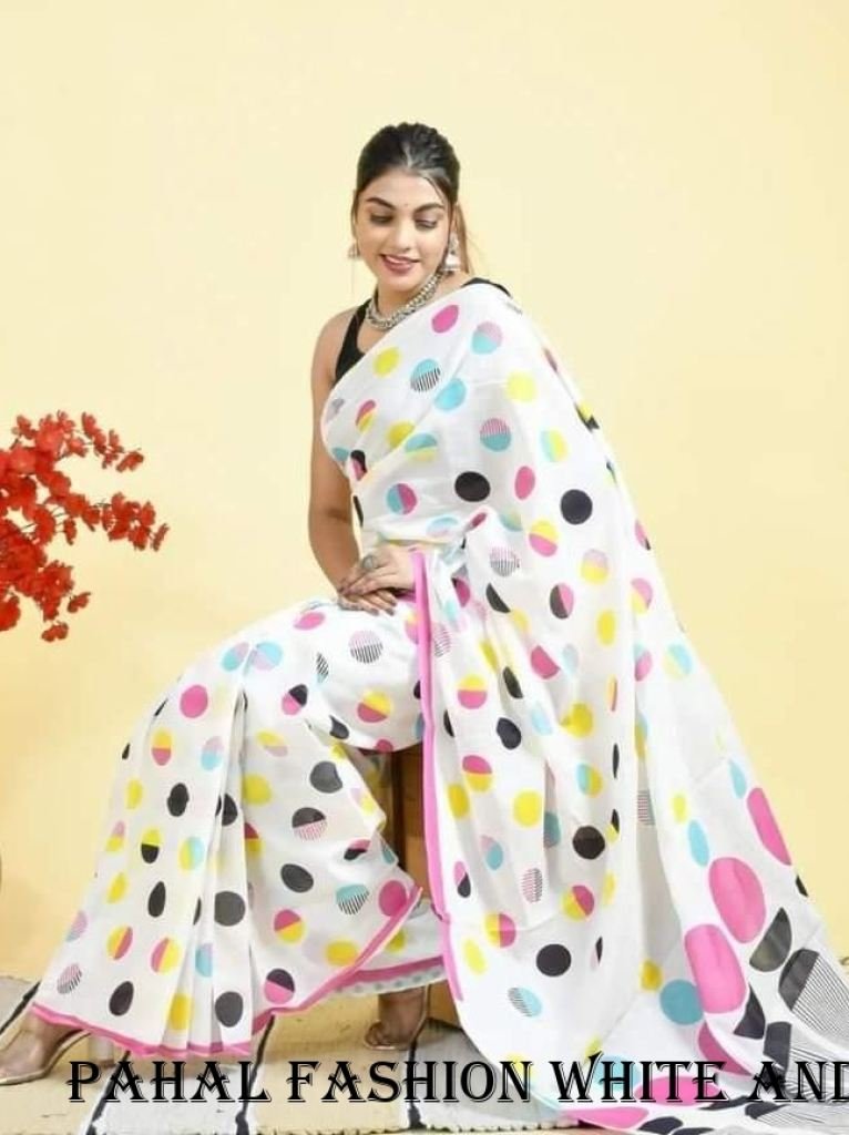 Fabric : Pure LinenColor : White And Multi Color SareeBlouse : UnstitchPattern : Digital Printed Ready To Ship