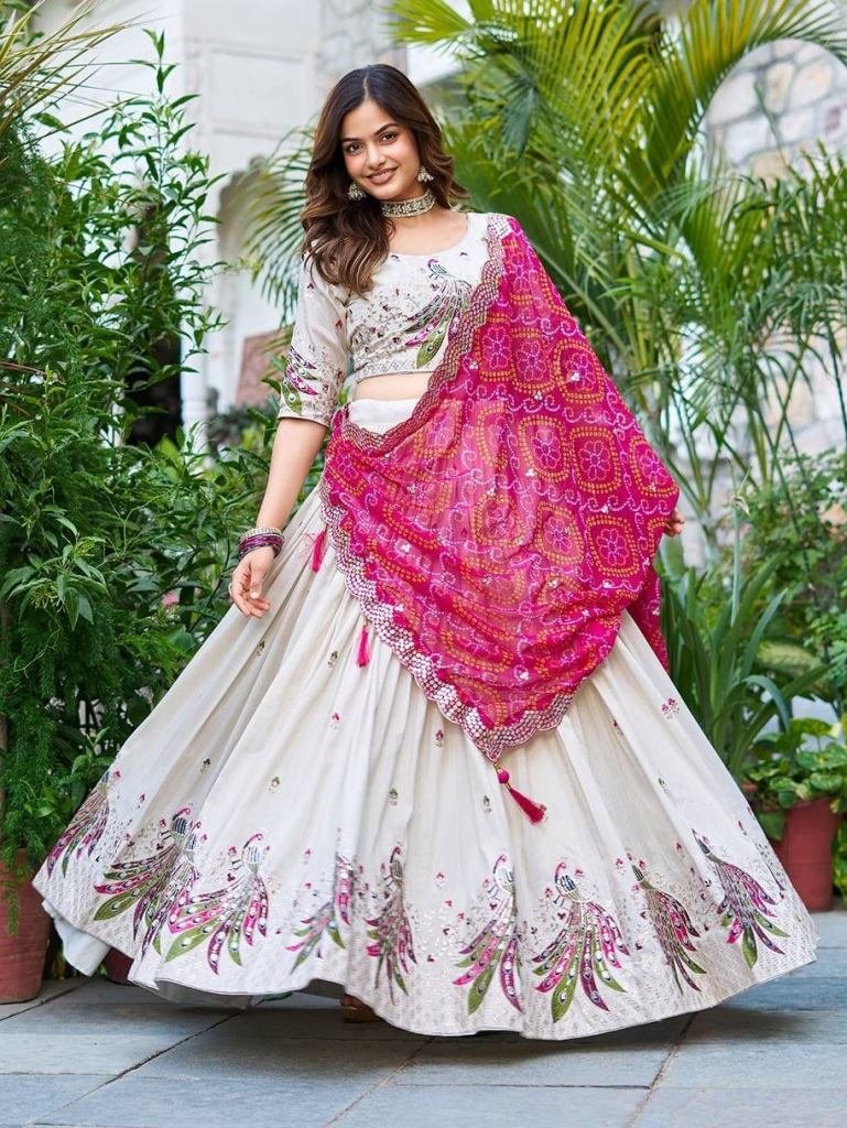 • New Arrival Heavy Peacock Embroidery Sequence Work Lehenga Choli