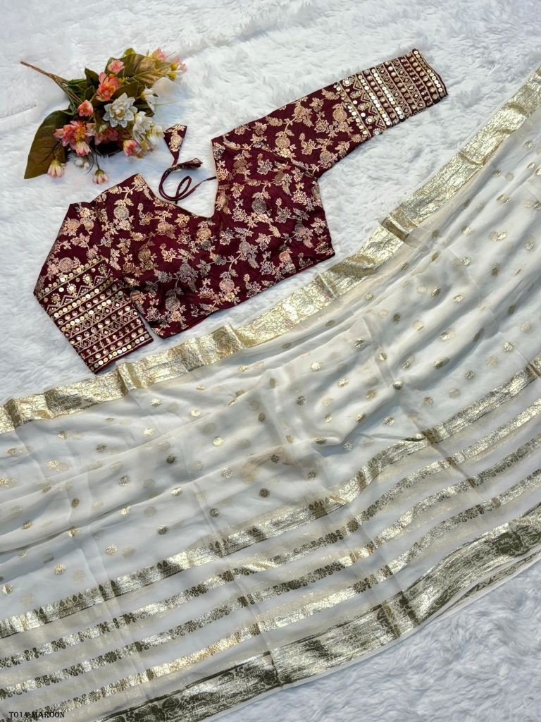 PURE VISCOSE SAREE WITH READY MADE DOLA BLOUSE