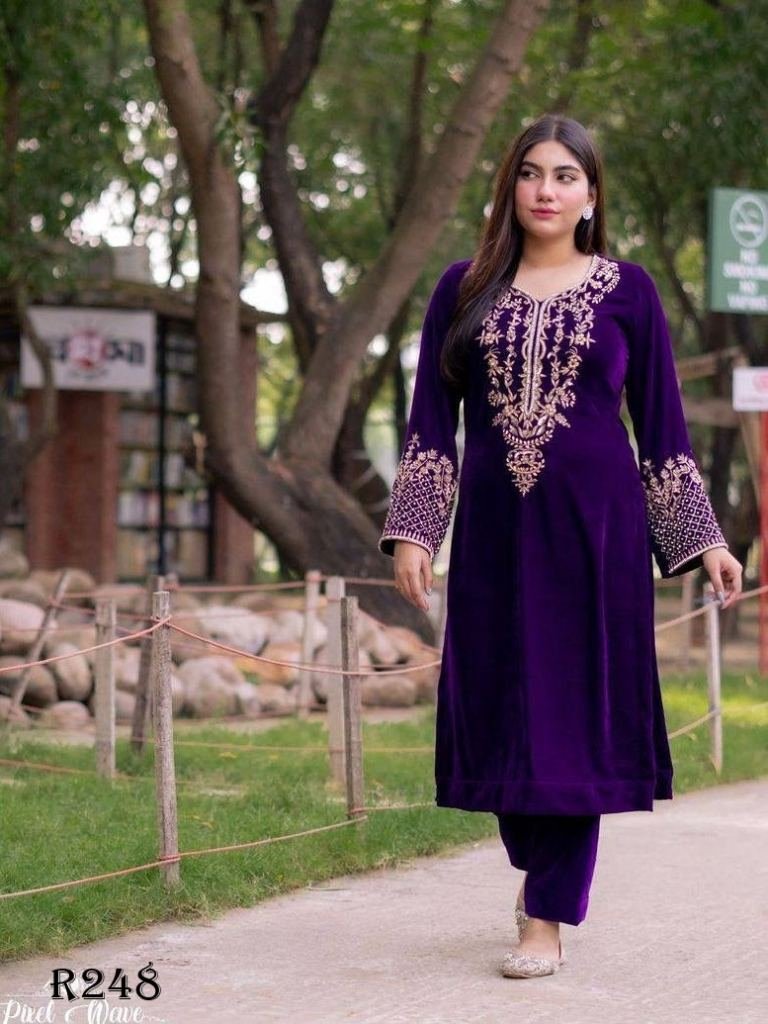 Kurta : heavy velvet with sequins nembroidery work (fully stitched)
