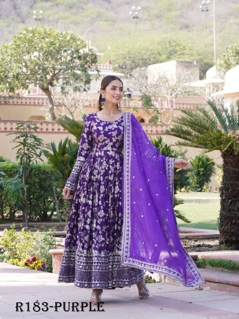 Purple Embroidered Viscose Stitched Gown With Sequence Work