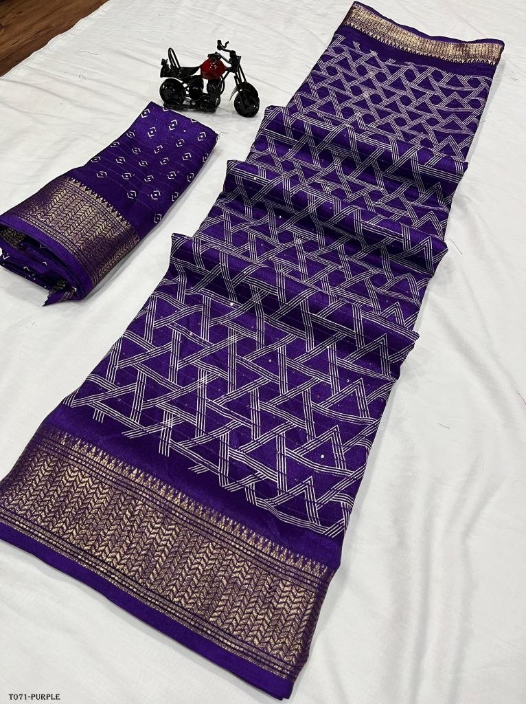 Dola silk sarees with allover sequence along with kondapalli toys and tree designs..With contrast kanchi boardersSelf pallu with figuresBlouse is shown in picToo soft and leight weight