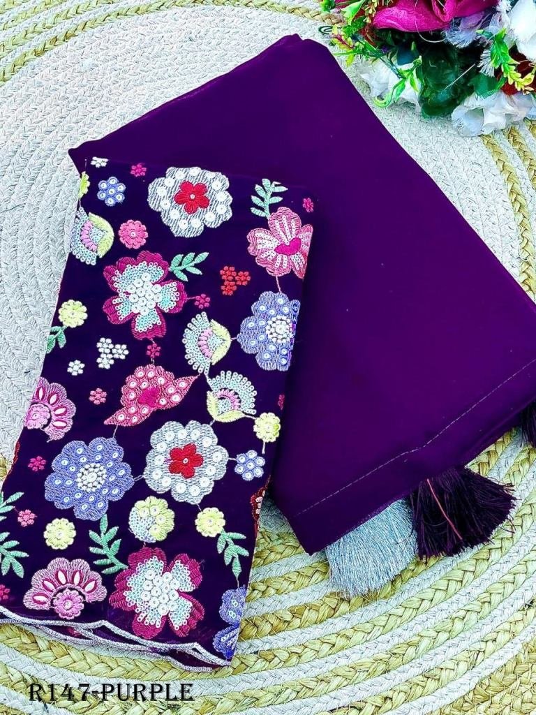 Fabric : Faux georgette Blouse :- tone to tone floral 3D embroidered blouse piece and tassels on pallu.Saree cut : 5.5Blouse piece: 0.8Occasion :- Wedding, Function, Festival