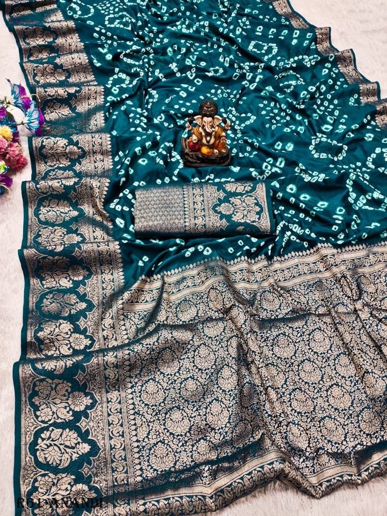 Fabric :- Kanjivaram SilkWork :- HandmadePattern :- BandhejSaree Length :- 5.5Blouse Length :- 0.8Occasion :- Wedding, Festival