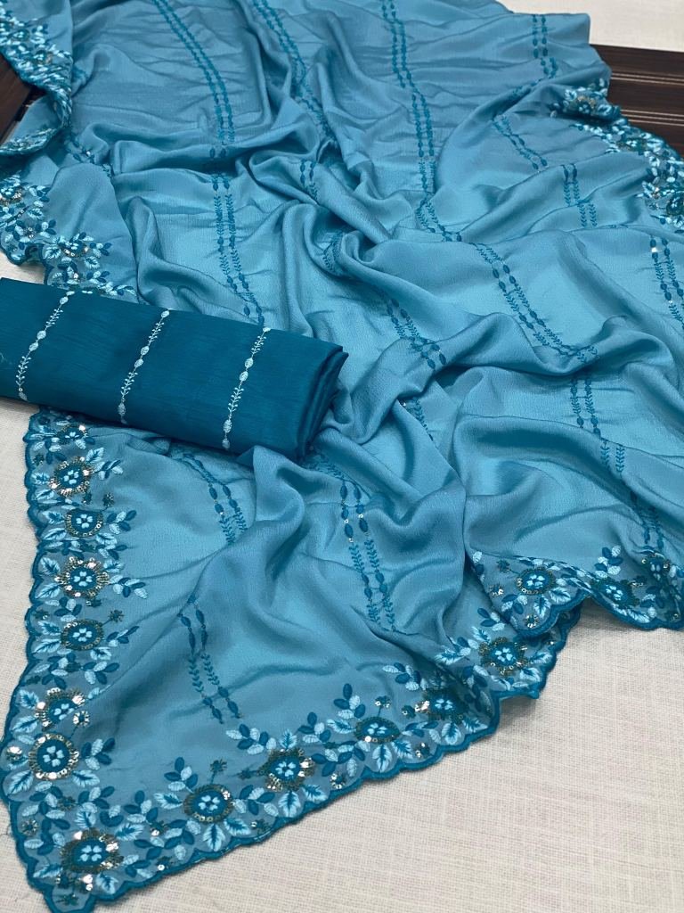Saree :- Chinnon SilkBlouse :- Mono Banglori SilkWork :- Embroidery Saree Length :- 5.5Blouse Length :- 0.8
