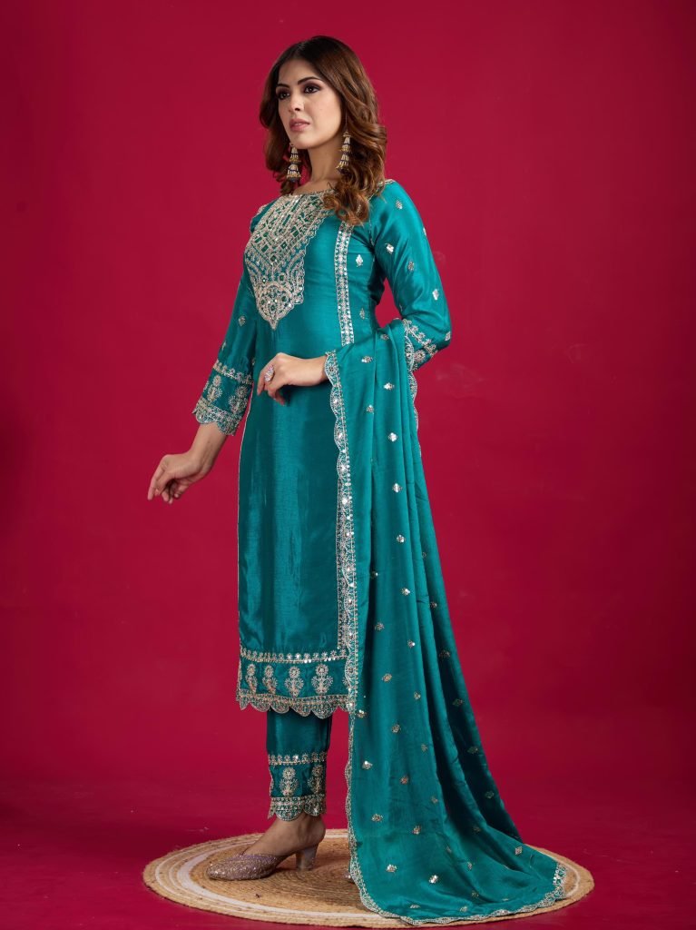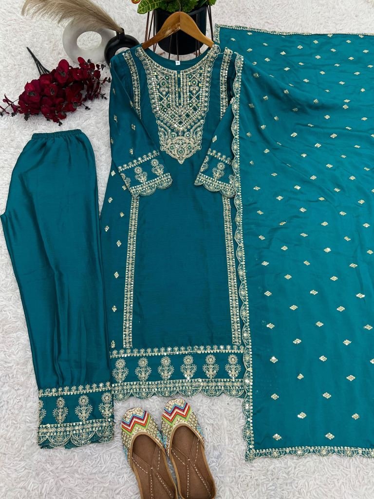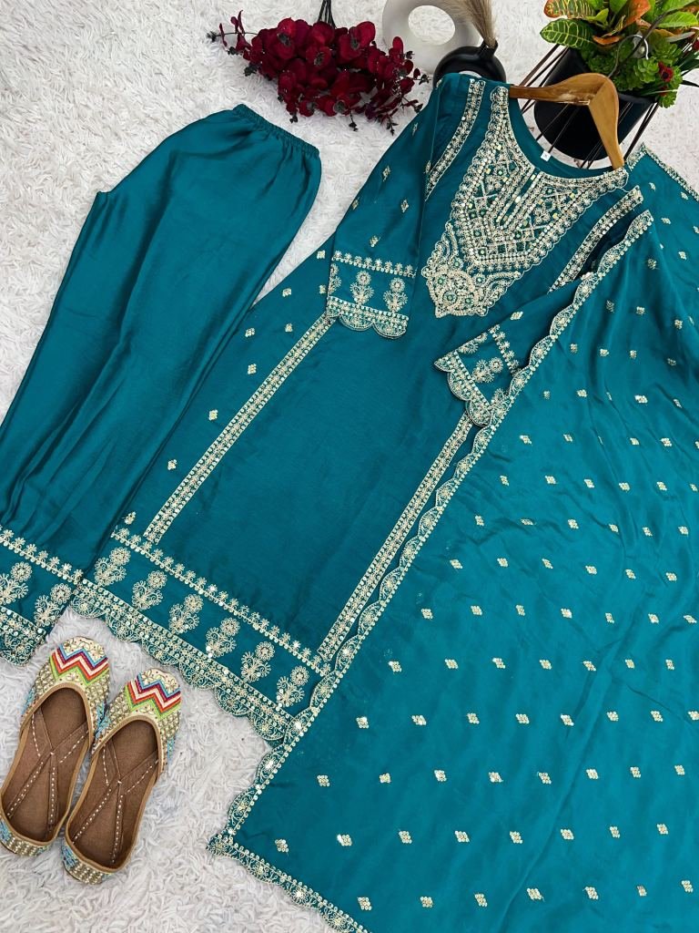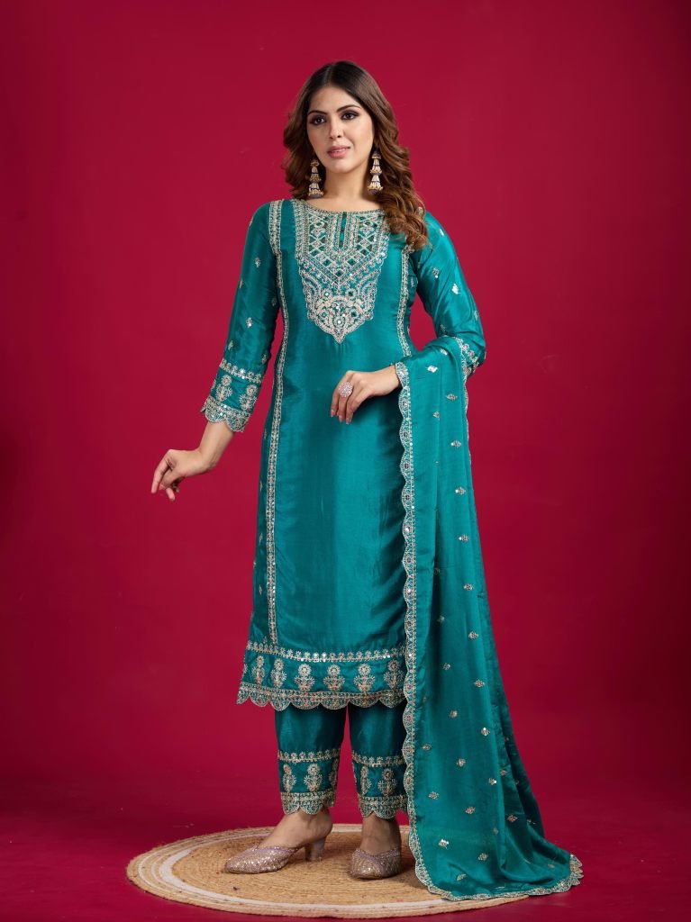 Bottom Fabrics :Pure Heavy Chinnon Silk With Heavy Embroidery Coding Sequence Work