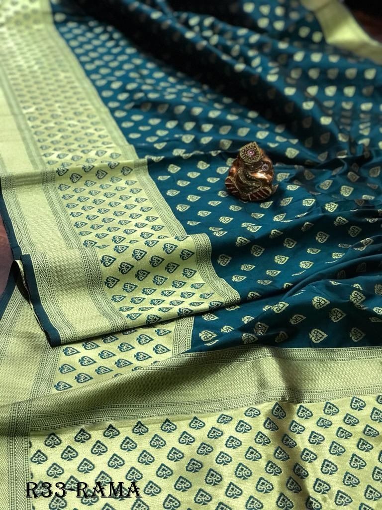 Fabric :- Pure Banarasi SilkZari :- Gold ZariSaree Length :- 5.5Blouse Length :- 0.8