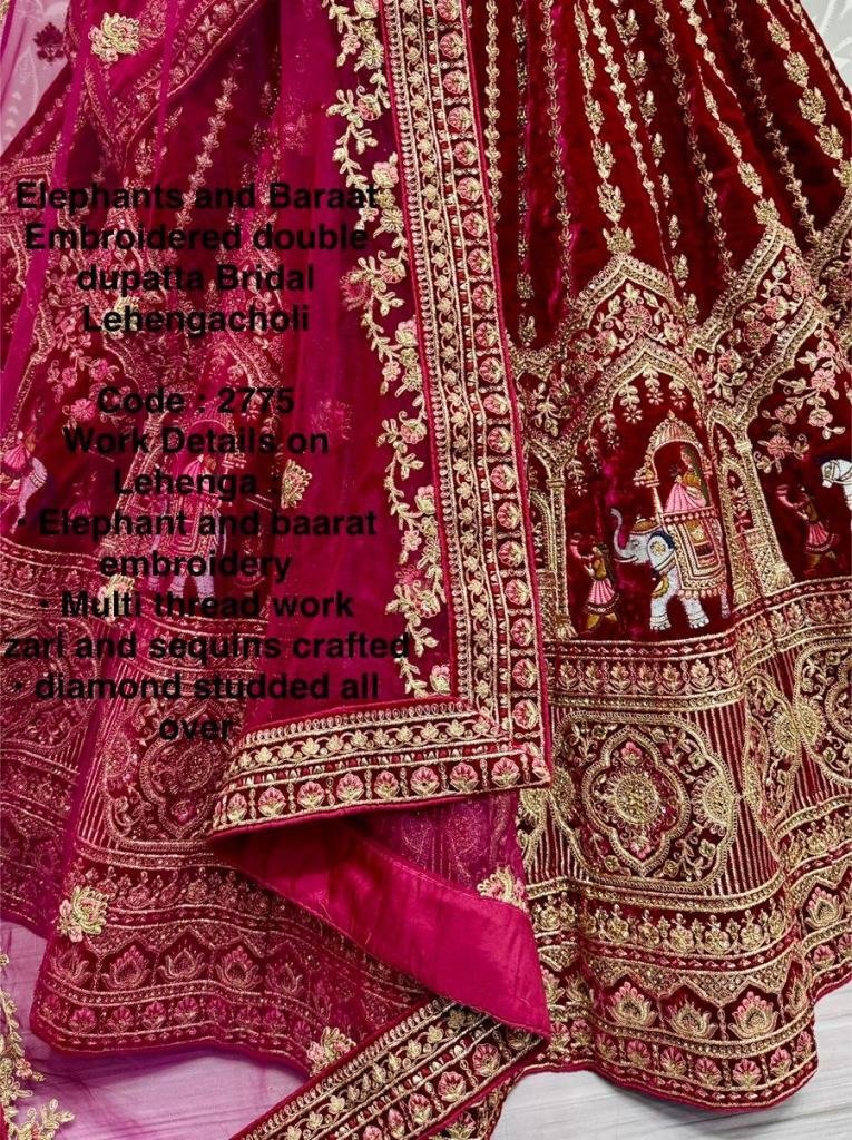 Work :- Elephant and baarat embroidery, Multi thread work, zari and sequins crafted, Diamond studded all ove