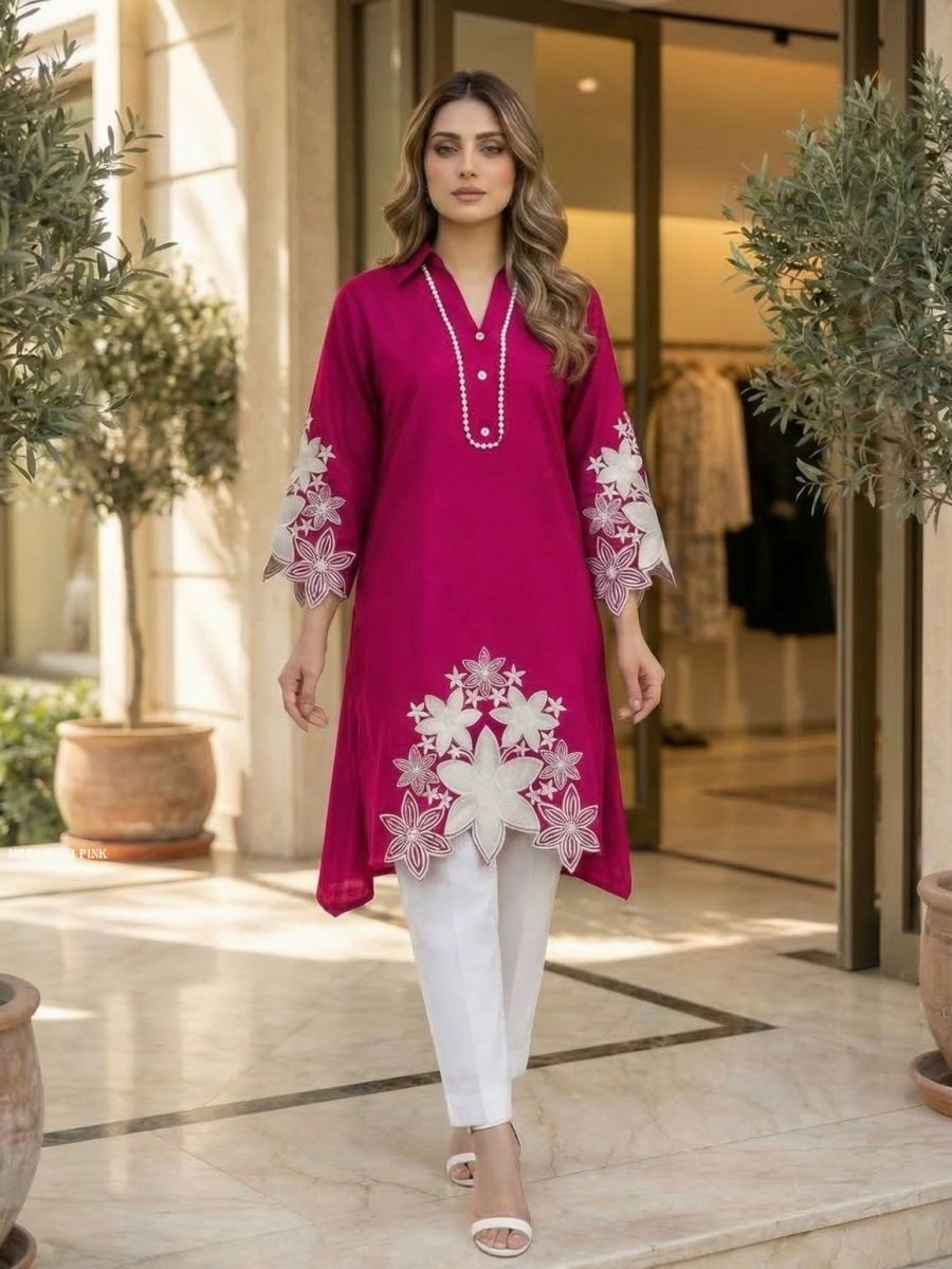 Kurti Fabric: 14kg Heavy Rayon With Embroidery Work