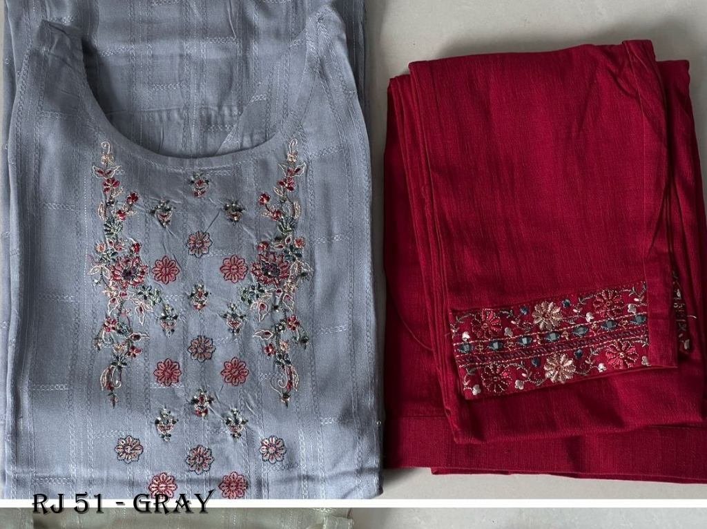 Bottom:- 4 Way Cotton Lycra With Bottom Embroidery Work