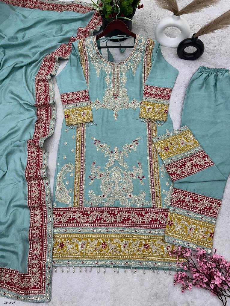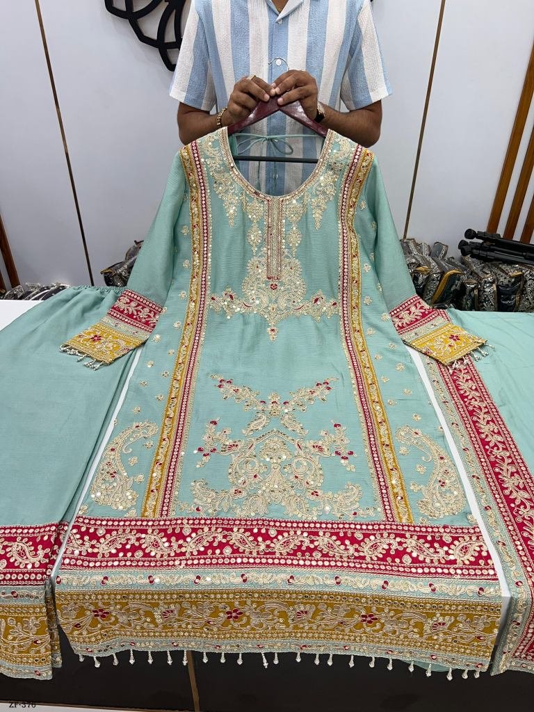 Top Fabric :Pure Chinnon Silk With Heavy Embroidery Cording Sequence Work And Full Sleeve