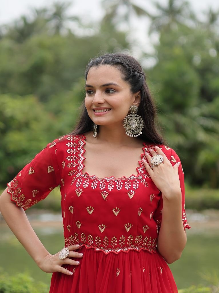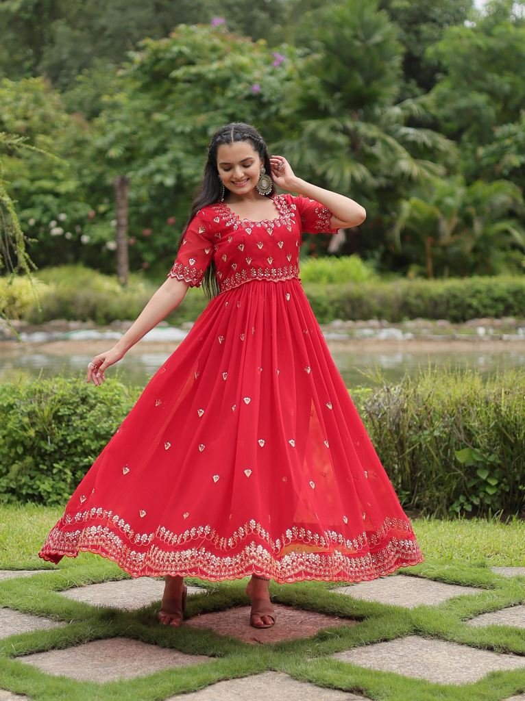 Fabric & work:- faux blooming with embroidery zari sequins-work