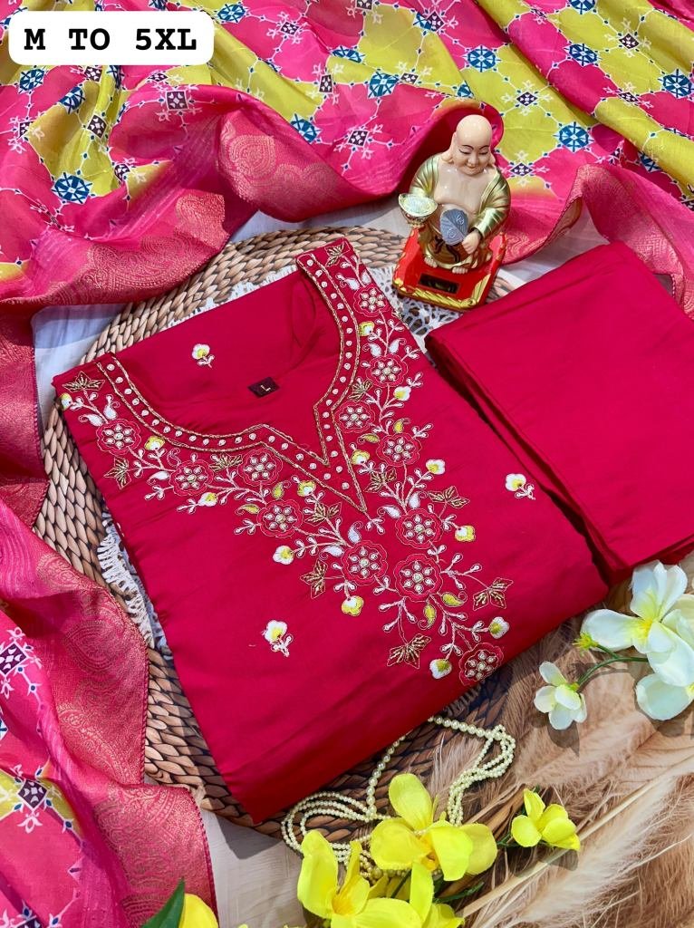 Featuring Muslin Viscose Suit Which Has Beautiful Handwork Detailing And Banarasi Dupatta. It Is Very Easy, Breezy And Comfortable As It Looks. It Is Paired With Matching Pants And Dupatta.