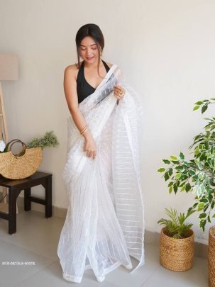 STYLE YOURSELF IN THAT WAY SO SOMEONE ASK U WHAT ARE U DOING FOR THATSuperb Soft Refined Organza Silk Saree With silver gota Work in all over the saree with same organza blouse of saree In our saree all embroidery work done by viscos thread only