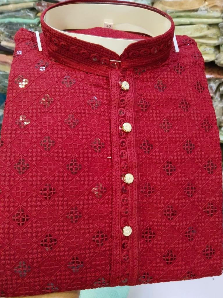 Fabric Details Kurta Fabric :- Heavy RayonWith Lucknowi and Sequence WorkPajama Fabric :- Raymond cottonTag Size:- 34, 36, 38, 40, 42, 44Loosing 4inch
