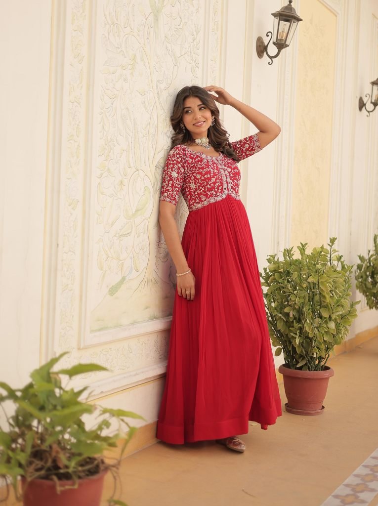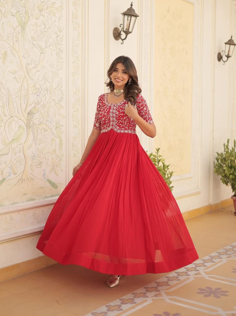 Fabric & Work :- Faux Blooming with Embroidery Zari Sequins-work